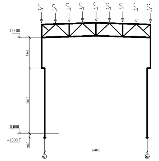 Рисунок 2.5 Расчетная схема на снеговые нагрузки(вариант №1)