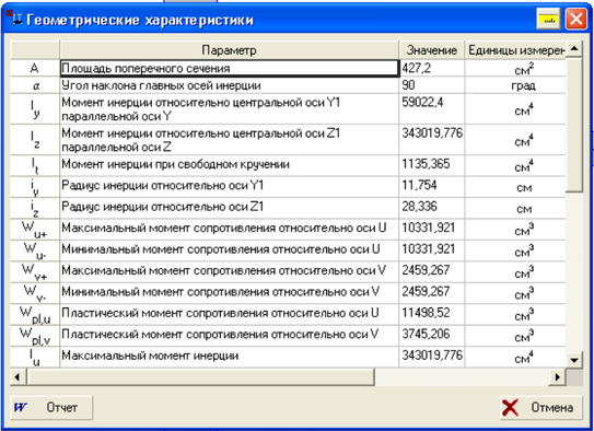 | Wu- | Минимальный момент сопротивления относительно оси U | 26,037 | см3 |