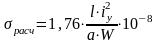 где l – расстояние между соседними опорными изоляторами, l=3 м; iу – ударный ток короткого замыкания, iу=46,57 кА; а – расстояние между осями шин соседних фаз, а=0,5 м; W – момент сопротивления шины относительно оси, перпендикулярной действию усилия, рассчитывается по формуле [6]