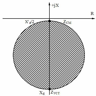 Круговая характеристика дистанционной защиты генератора представлена на рисунке 2.2.