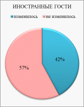Об изменении отношения иностранных гостей к городу Хабаровске: 54 человека выбрали ответ «нет» (57%), 40 человек ответили «да», причем изменилось отношение в лучшую сторону (42%).