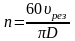 где рез – скорость резания, 0,83 м/с; D – диаметр вала, м.