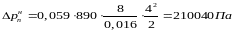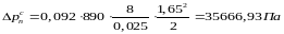 где – коэффициент трения жидкости о стенки трубопроводов; р – плотность жидкости, р=890 кг/м; 1– длина трубопровода, м; d – диаметр трубопровода, м; – скорость потока жидкости, м/с.