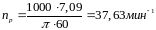 Расчетная частота вращения шпинделя: