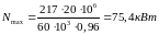 =217 л/мин; m − количество насосов, шт., m=1 шт.; Pном – номинальное давление рабочей жидкости, создаваемое насосом на выходе, МПа, Pном=20 МПа; об − объемный к.п.д. насоса, об=0,96.