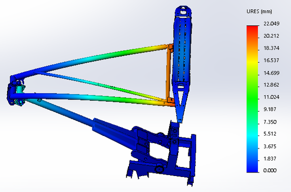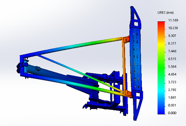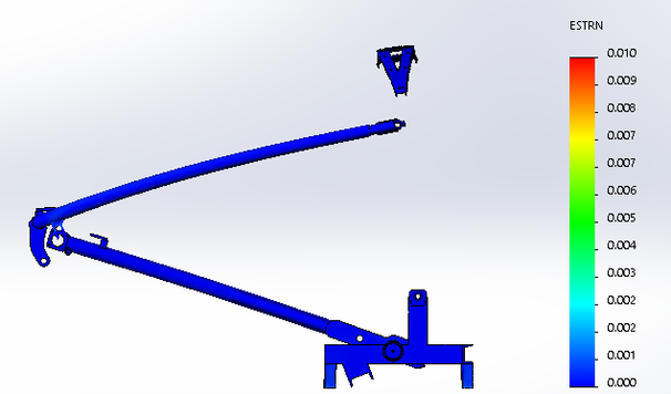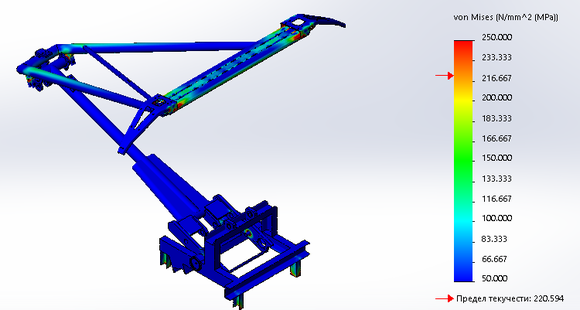 Предварительные данные проведенных испытаний дают основания судить о том, как деформируется и какие напряжения испытает исследуемый объект. На основании этих результатов можно сказать о том, что в данных конкретных условиях значительные и максимальные перемещения получат полоз, каретки, верхняя рама и синхротяга токоприёмника. Максимальные напряжения и деформации возникают в обеих каретках, нижней части верхней рамы, в месте крепления несущего рычага и основания и самом основании.