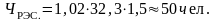 Для расчёта расходов на оплату труда необходимо рассчитать общую численность работников РЭС, по формуле, чел.