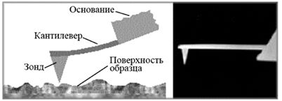 В атомно-силовом микроскопе (АСМ), устроенном аналогично СТМ, вместо туннельного тока измеряют силу вандерваальсового отталкивания зонда от поверхности образца. Зонд имеет нанометровые размеры и закреплен на микропружине – кантилевере (рисунок 3.5).