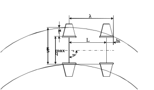 Уширение колеи обеспечивает вписывание подвижного состава в кривые. Поскольку колесные пары закреплены в раме тележки таким образом, что в пределах жесткой базы они всегда параллельны друг другу, в кривой только одна колесная пара может расположиться по радиусу, а остальные находятся под углом к нему. Это требует увеличения зазора между гребнями колес и рельсами во избежание заклинивания колесных пар рисунке 2.2.