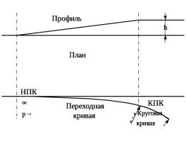 Наличие переходных кривых связано с необходимостью плавного сопряжения кривой с примыкающей прямой как в плане, так и в профиле пути.