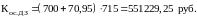 Согласно формуле (4.23) сметная стоимость перевода участка тяговой сети на модернизированные приборы защиты составит