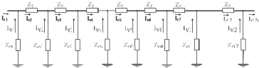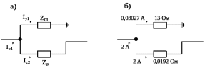 Определим распределение сигнального тока на участке. Рассмотрим схему замещения на рисунке (1.14). Сигнальный ток, на питающем конце принимаем равный 2 А.