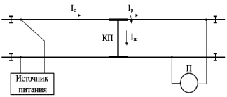 Рисунок 1.6 - Схема рельсовой цепи в шунтовой режиме