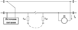 - сопротивлениями изоляции (балласта) отрезков поврежденной рельсовой нити относительно земли рисунок (1.7)