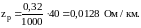 Найдем общее сопротивление рельсовой цепи на участке 1000 м по