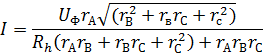 При напряжении Uф = 220В, сопротивлениях: фазы «А»=10 кОм, фазы «В»=100 кОм, фазы «С»=1МОм и сопротивлении тела человека Rh = 1 кОм оценим опасность прикосновения человека к сети при однополюсном прикосновении, если отпускающее значение тока Ih = 6 мА.