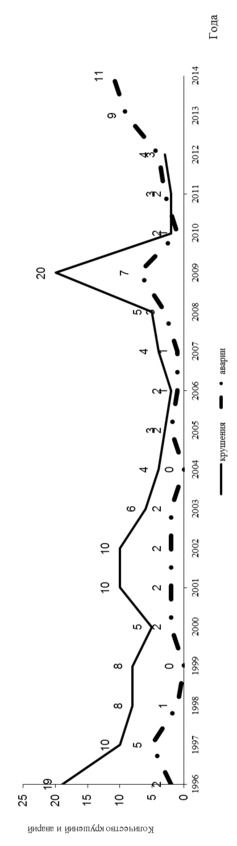 Рисунок 2.1 - Статистика крушений и аварий за 1996 – 2014год