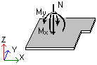 | My | тс * м | Изгибающий момент относительно оси, сонаправленой с осью Y и проходящей через центр тяжести фунд.плиты | Действие по часовой стрелки, если смотреть с конца оси Y | |