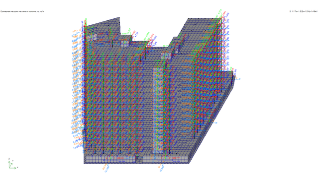 Рисунок 2. 4 Суммарные нагрузки на стены и колонны от РСН