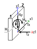 | Mx | тс * м | Изгибающий момент относительно оси X1 | Действие против часовой стрелке, если смотреть с конца оси X1 | ||