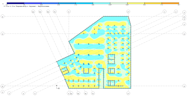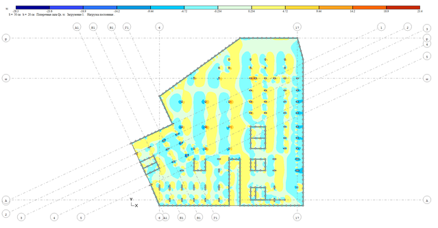 Рисунок 2.13 Изополя поперечной силы Qу при постоянном загружении