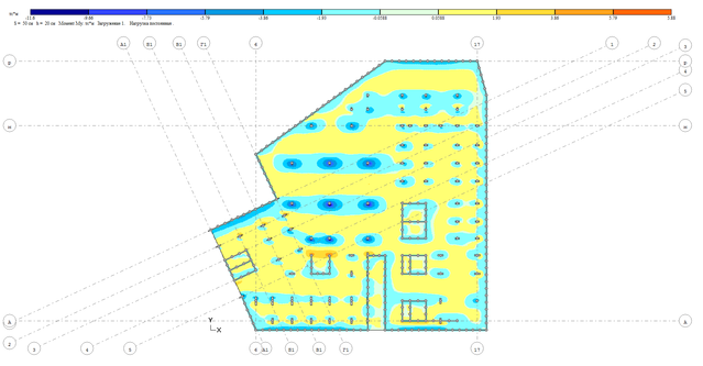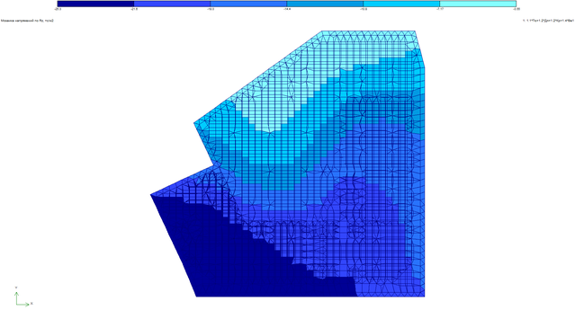 - для стен выполняется построение полей напряжений, для элементов каркаса выполняется построение эпюр усилий;