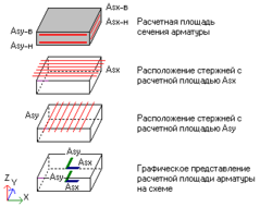 площадь арматуры вдоль осей x и y в графическом и цифровом виде;