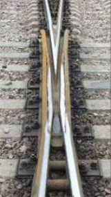 Крестовины – это элементы пути, предназначенные для пересечения рельсовых нитей под некоторым углом (рисунок 1.10 и 1.11). Различают крестовины без подвижных частей, по которым движение подвижного состава возможно по любой из рельсовых колей в любое время, и крестовины с подвижными элементами, которые должны переводиться одновременно со стрелками, и движение по которым возможно только по той колее, на которую переведена крестовина. Крестовины с подвижными элементами вместе с приводами в целом дороже как в изготовлении, так и в эксплуатации, зато позволяют обходиться без контррельсов и без разрыва рельсовой колеи, которое неизбежно в неподвижных крестовинах в тех местах, где траектория гребня колёс пересекает рельсовую нить другого направления. За счёт этого крестовины с подвижными элементами позволяют достигать гораздо большей плавности прохождения подвижного состава и уменьшать ударные нагрузки. Крестовины обычно изготавливаются и высокомарганцевой стали (сталь Гадфильда), обладающей высоким сопротивлением износу при ударных нагрузках.