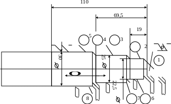 Деталь – ось ролика конвейера изображена на рисунке 4.1. Ось представляет собой тело вращения. Поверхности 1;9-торцевая поверхность. Поверхности 2;10 служат для крепления оси. Поверхности 3;11 являются посадочными для подшипников. На поверхностях 2;10 сделан уступ. Поверхности 4;7 служат для упора внутреннего кольца подшипника, для чего выполнена галтель радиусом 2 мм.