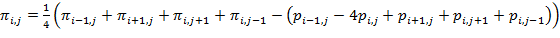 Метод основанный на данных полученных при использовании барометрической формулы, но перед запуском алгоритма барометрической формулы к исходным данным температуры на уровне земли применяется горизонтальная интерполяция, чтобы минимизировать влияние высоты. В данном случае мы используем обычный алгоритм сглаживания основанный на 9 точках так, как использование горизонтальной интерполяции температуры из-за своей сложности, которая занимает много времени в отличии от сглаживания, давая результат схожий всего за 5 итераций.