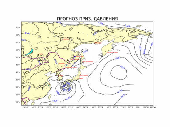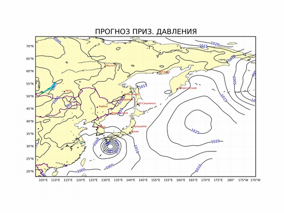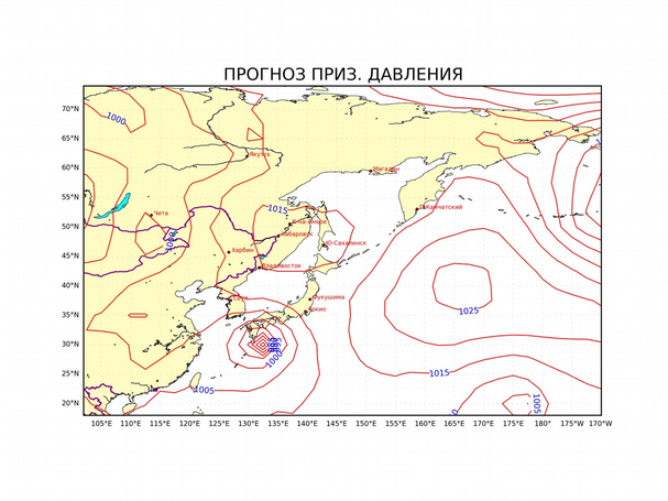 Информация о погодных условиях собирается из модели wrf с шагом 15 км по Дальневосточному региону с интервалом в 3 часа.