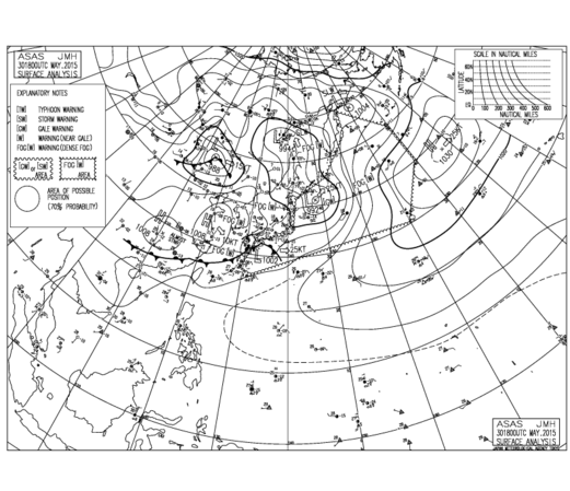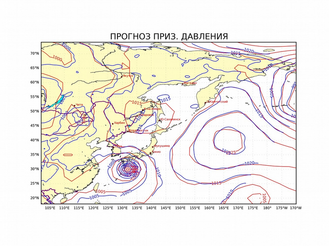 Чтобы провести объективный анализ работы методов используются данные Европейского и Японского метеорологических центров. Европейский метеорологический центр предоставляет информацию о давлении на уровне моря со всего земного шара с шагом 2,5 градуса и интервалом в 6 часов. Данная сетка состоит из 145 на 37 точек. Японский метеорологический центр предоставят информацию только в цифровом формате представленном на рисунке 3.1 и интервалом в 6 часов. Цифровой формат данных не является достоверным для текущего исследования и не будет использован.