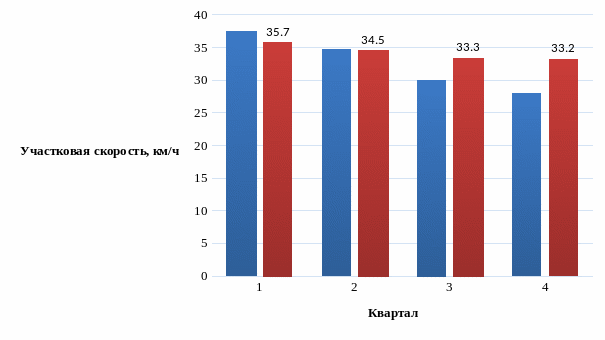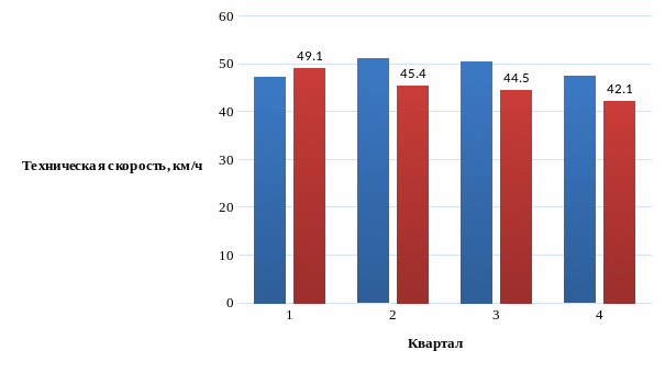 Анализ участковой и технической скорости представлен в таблицах 1.3, 1.4 и рисунками 1.3, 1.4 (соответственно).