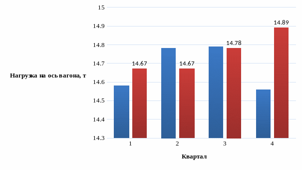 Анализ нагрузки на ось вагона представлен в таблице 1.5, рисунок 1.5.