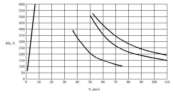 Рисунок 4.2 – Токовая характеристика электровоза 3ЭС5К, три секции в голове поезда