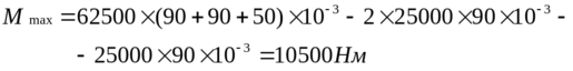 Определим диаметр оси. Максимальный изгибающий момент, который действует на ось, приходится на ее середину. Этот момент, согласно рисунку, определим по формуле