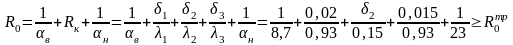 где R1, R2, …, Rn – термическое сопротивление отдельных слоев ограждающей конструкции,