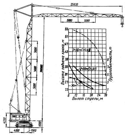 | Длина стрелы, м | 30,0 с гуськом 26,0 м |