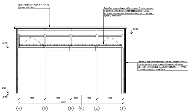 - наружные стены из сэндвич-панелей и утеплением из минераловатных плит на основе базальтового волокна.