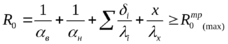 Rₒ=1/8,7+(0,18/2,04+х/0,06+0,03/0,93+0,005/0,15+0,005/0,17)+1/23≥4,78,тогда:
