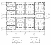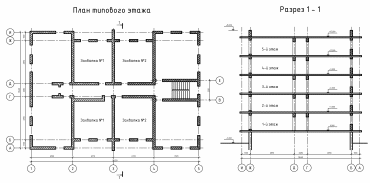 Здание имеет размеры в плане: длина здания в осях 1 - 5 – 26.26 м, ширина здания в осях А - И – 18.46 м. Высота типового этажа составляет 3 м (2.8 м высота стен + 0.2 м конструкция монолитного перекрытия). Типовыми этажами 5-ти этажного жилого дома являются: