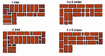 Рис.5 – Схема многорядной перевязки для стены 1.5 кирпича