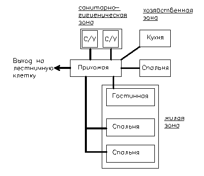 Рисунок 1.3 – Функциональная схема четырехкомнатной квартиры
