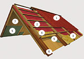 В конструкции утепленной кровли. Материал может использоваться в качестве пароизоляционного слоя при сооружении утепленных кровель мансард, используемых в качестве жилых помещений. Он применяется с различными типами кровельных покрытий. Укладка материала осуществляется с внутренней стороны утеплителя. Изоспан В укладывается на элементы несущего каркаса либо на черновую обшивку. Назначение его заключается в защите теплоизоляционного слоя от воздействия пара, который проникает изнутри помещения. Гладкая сторона материала должна быть обращена к утеплителю.
