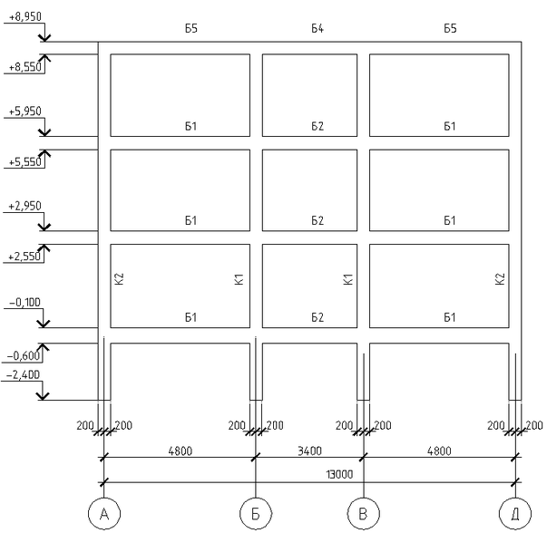 Конструктивная схема здания - каркасная. Пространственная жесткость и устойчивость здания обеспечивается жестким заделкой колонн в фундаментах, рамными сопряжениями колонн и ригелей, монолитными железобетонными диафрагмами и диском перекрытия.