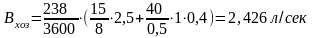 Расход воды на хозяйственные нужды Вхоз определяется по формуле