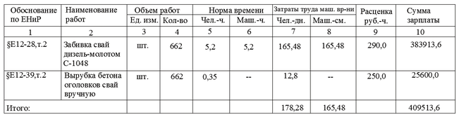 2. Нормативная трудоемкость свайных работ принимается по калькуляции трудовых затрат θн = 165,48 + 55,16 + 12,8 = 233,44 чел.-дн.