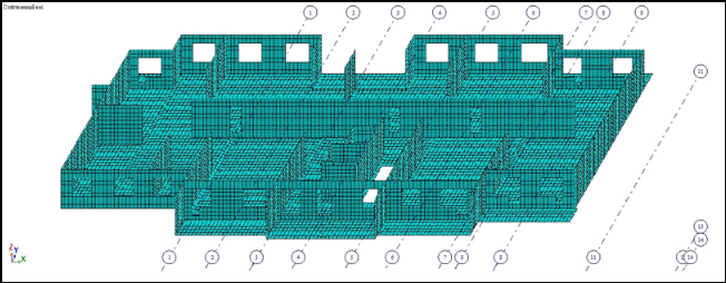 Рисунок 2.18 – Типовой этаж в системе конечных элементов (общий вид)