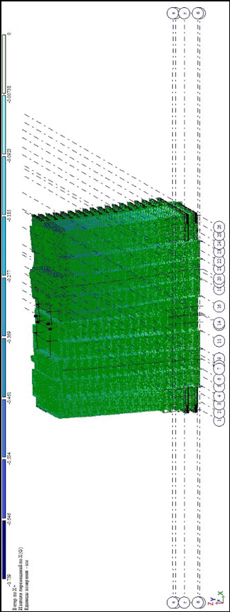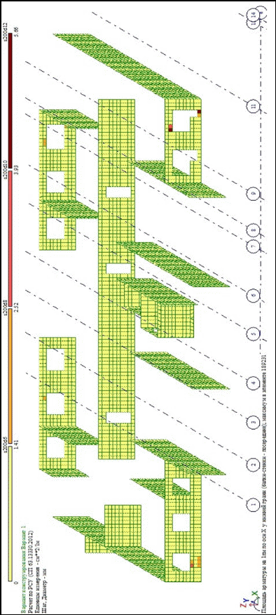 2.1.9 Изополя перемещений здания. Горизонтальные перемещения здания от ветровых нагрузок показаны на рисунках 2.16, 2.17.