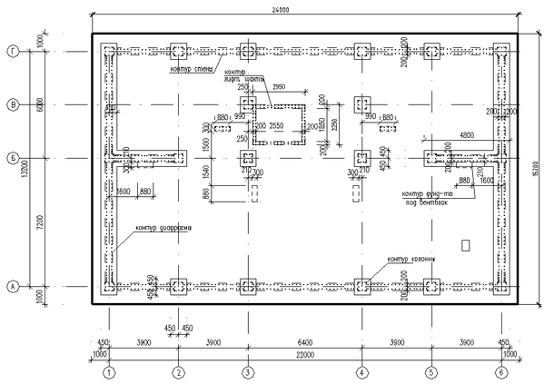 Расчет армирования верхней арматуры плиты фундамента выполняется на максимальный опорный изгибающий момент.